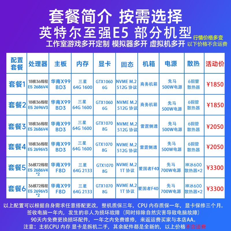 2686V4 2686V4 South China X99-BD3 64G 512G 1060 6G 6G Host 2696V3 South China X99-BD3 64G 512