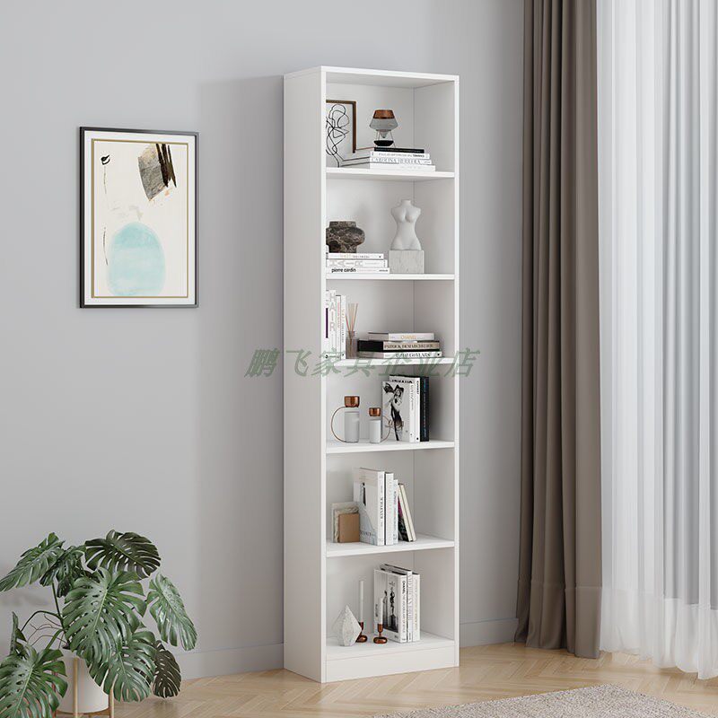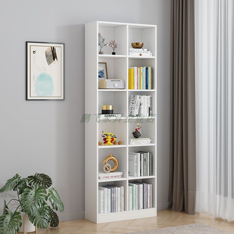 Solid wood bookcase Nordic minimalist shelving multi-layer storage white