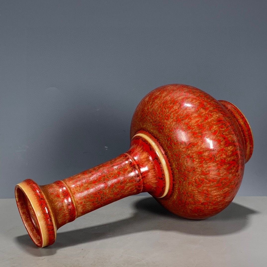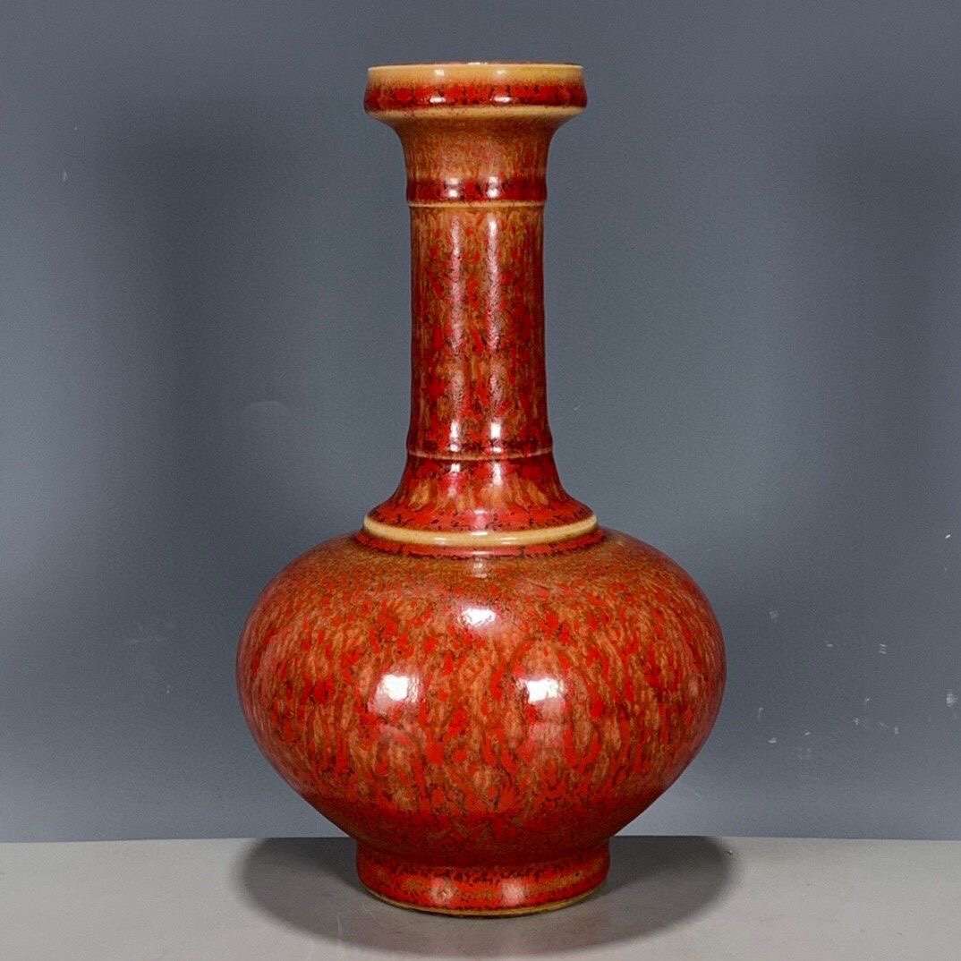 Europe Reflux antique porcelain Tai Qing Kangxi year Sacrifice Red Glaze Long Neck Bottle of America's Old Objects-Taobao
