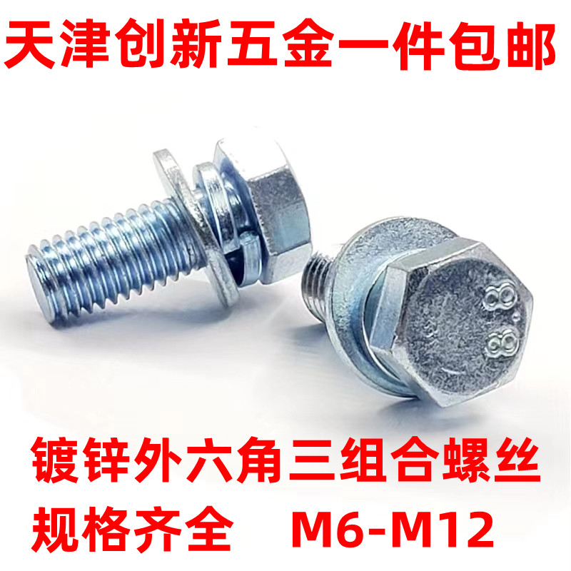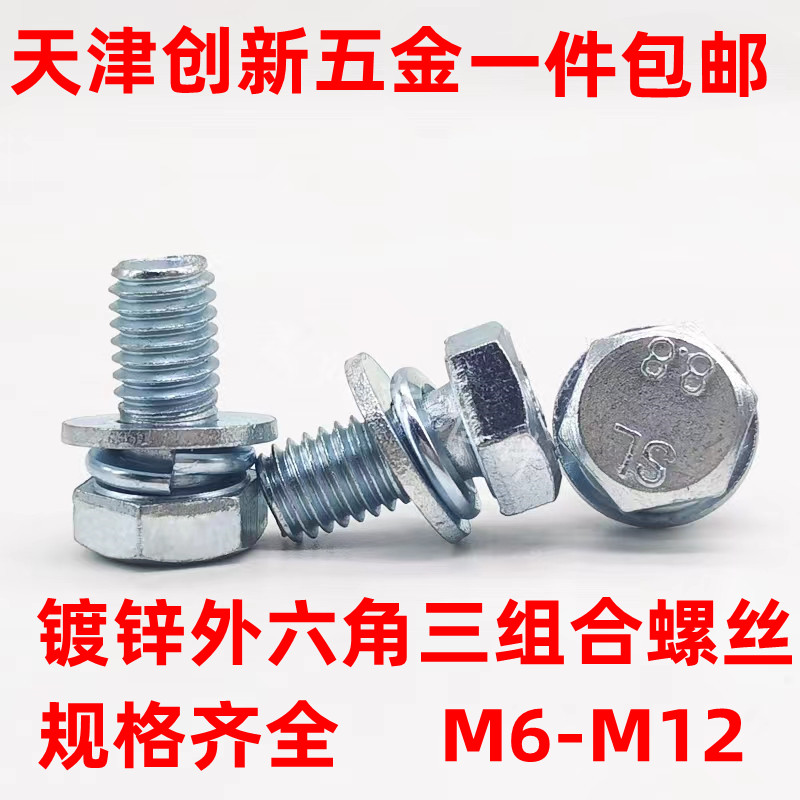 Galvanized outer hexagonal three combined screw GB9074 17 self - band flat bullet cushion bolt high strength M6M8M10M12