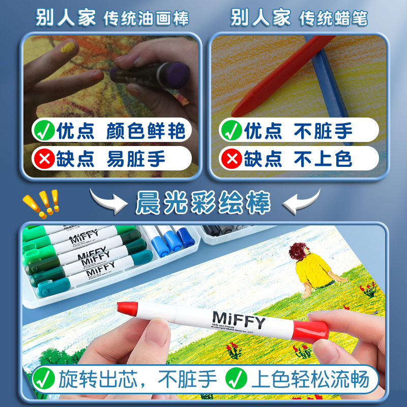 Morning light oil painting stick washable without dirty hand crayons Children's non-toxic Kindergarten special paintbrush 24 Color Colorful Stick 36 Color Rotating Wax Pen Baby Safe Fine Arts Special Water Soluble Color Pen Suit-Taobao
