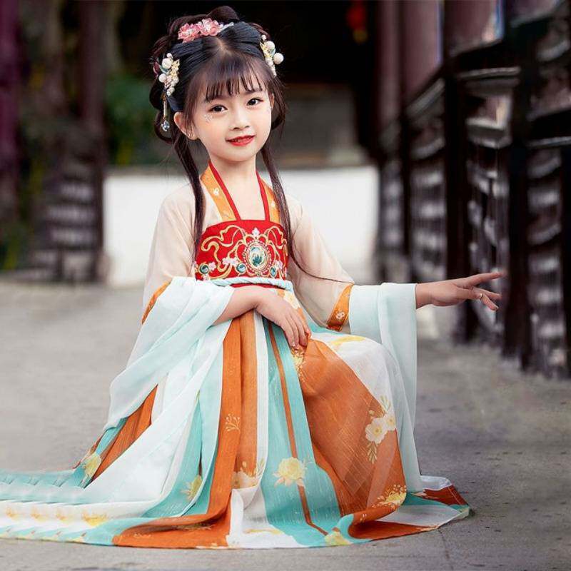 Children's Hanfu girls Chinese style super fairy ancient style girl Tang costume dress spring and summer fairy mid-sleeve new style