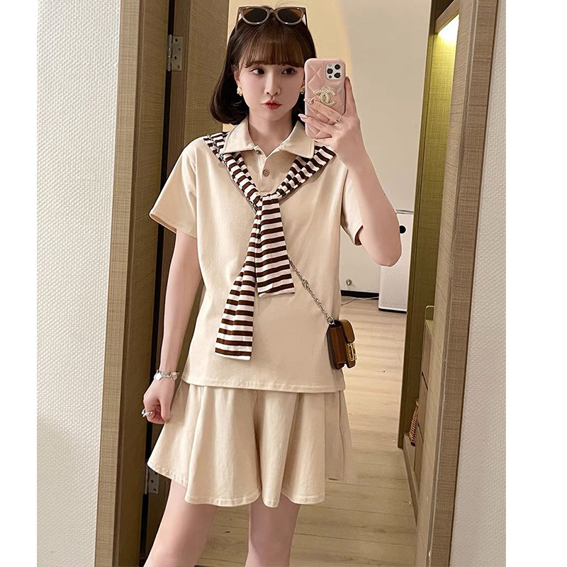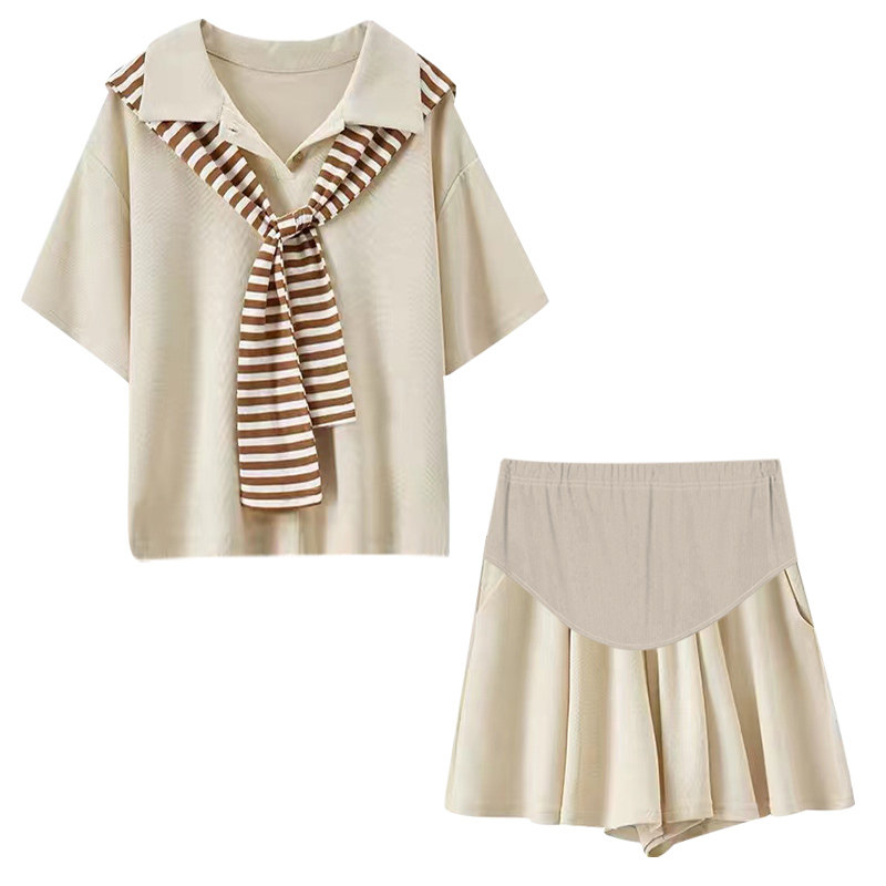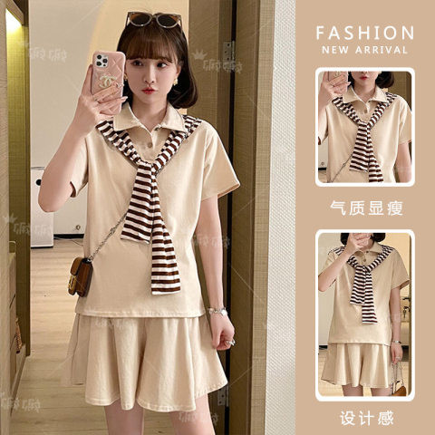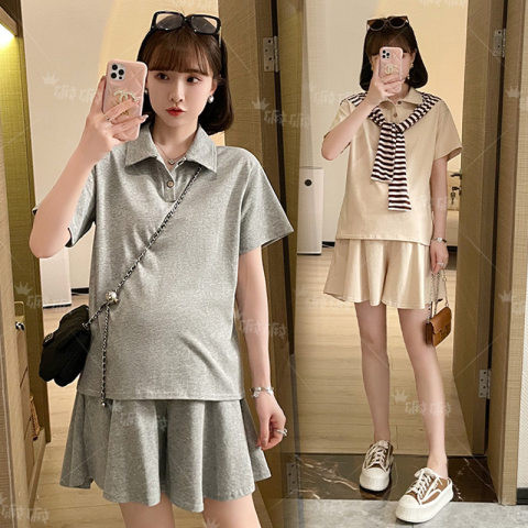 Maternity suit summer fashion loose thin section tide mom polo shirt short-sleeved shorts age-reducing two-piece summer dress for inspection