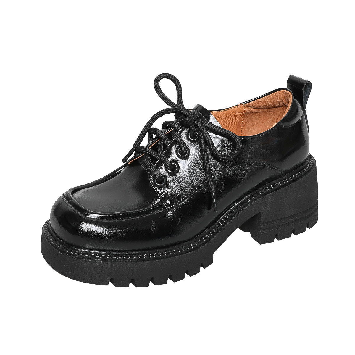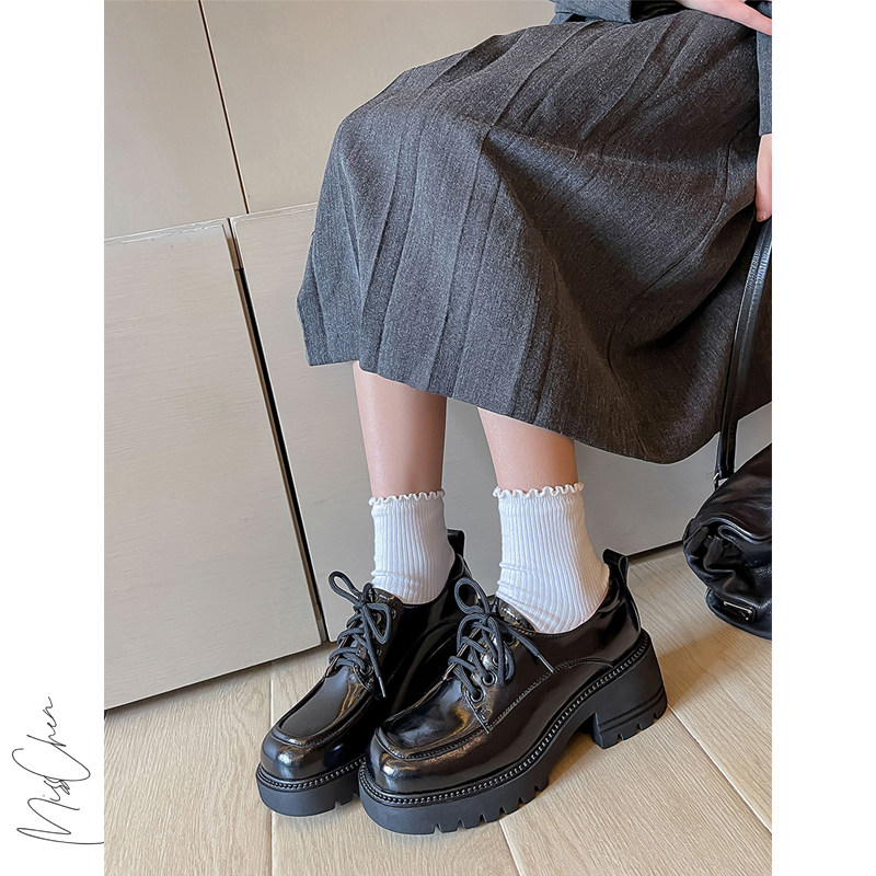 (In stock) cool sweet cool sweet~ British thick-soled heightened lace-up medium and high-heeled small leather shoes thick-heeled single shoes for women