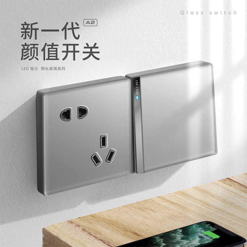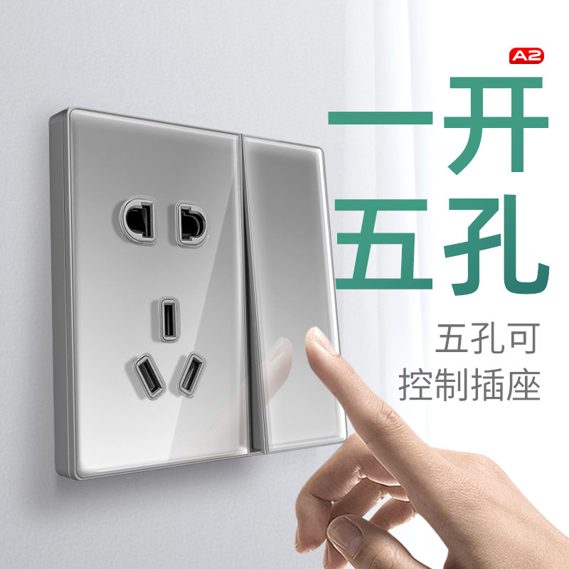 Upright five-hole socket (buy one get one free) Misplaced five-hole socket (buy one get one free) One open single control switch (tempered glass) One open double control switch (tempered glass) Two open single control