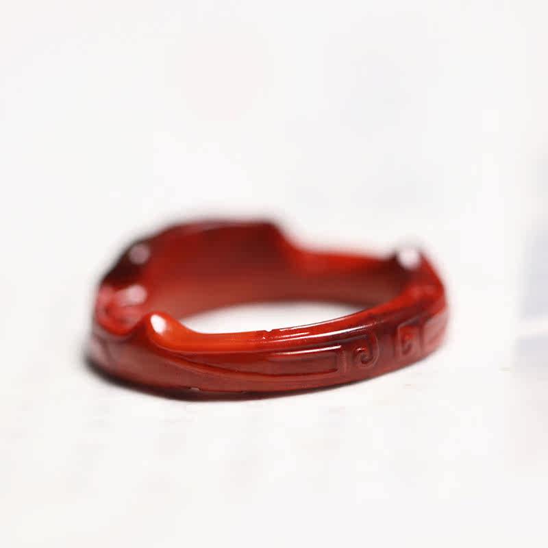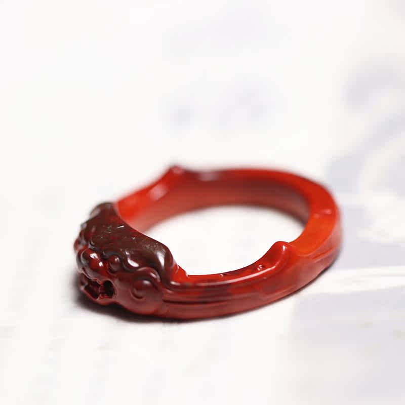 Collection grade raw ore south red agate paste animal face ring ring Su Gong famous color ruddy without cracks