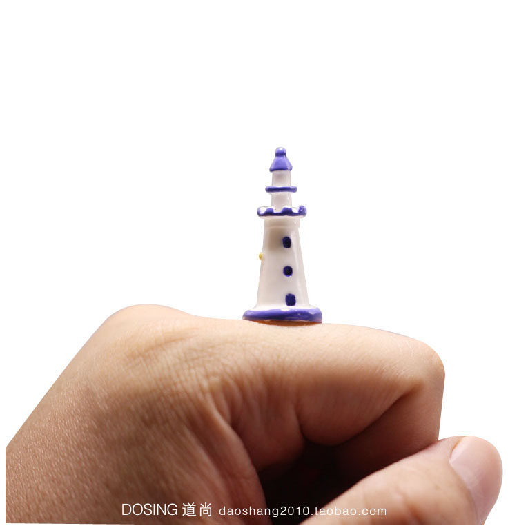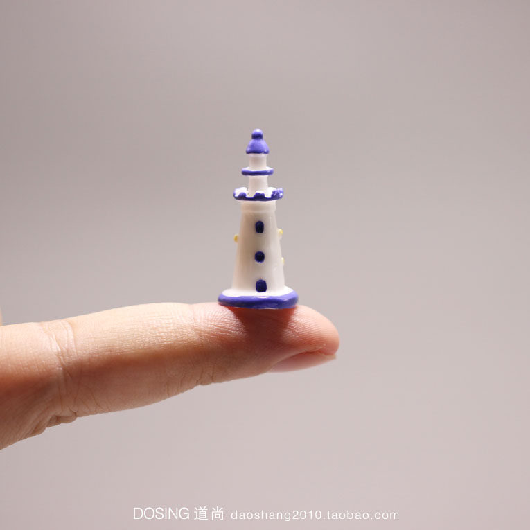 Mini version super small blue and white lighthouse micro landscape decoration tower potted scene resin model accessories