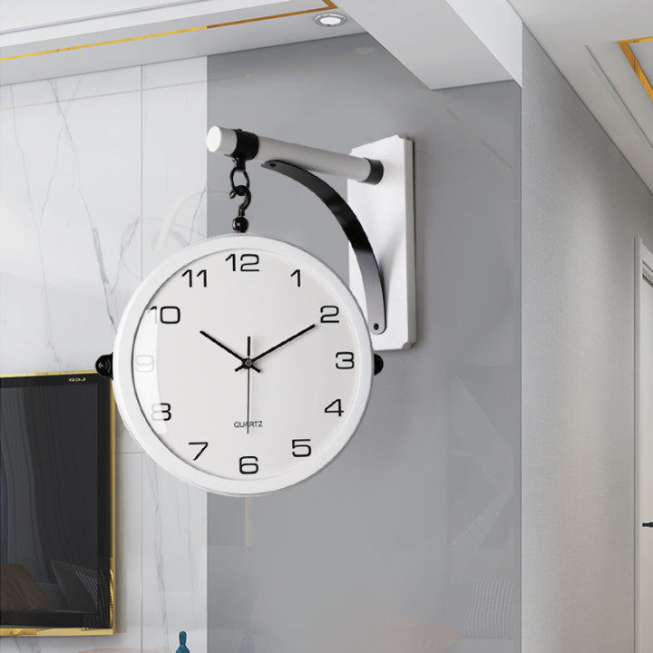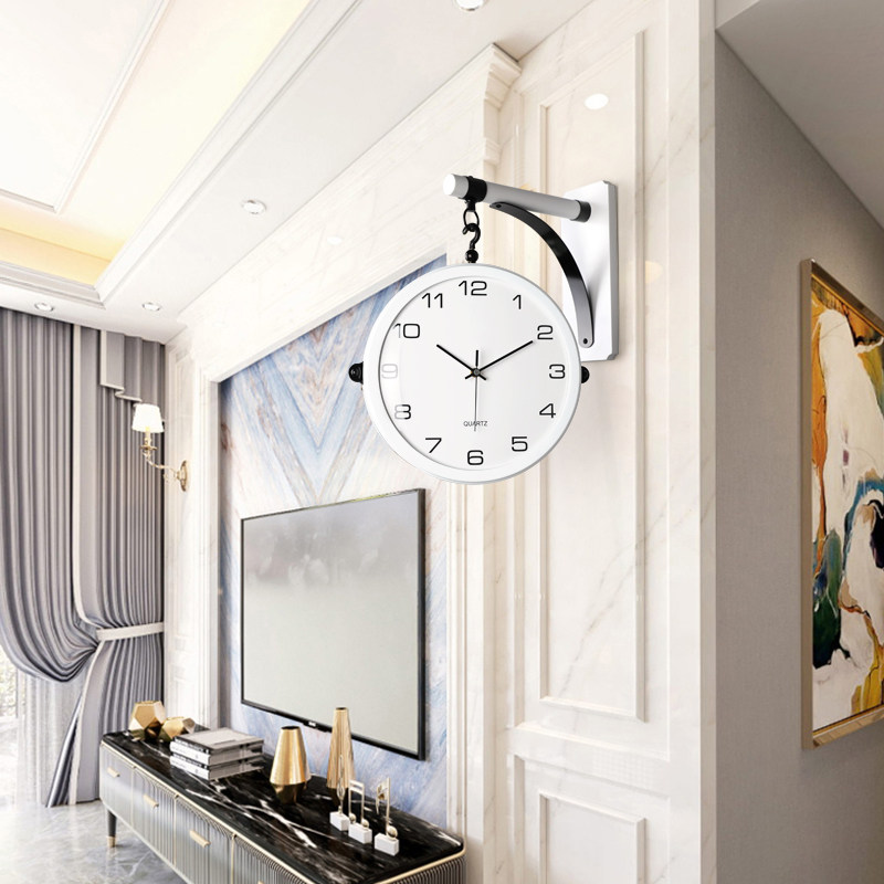 2023 new double-sided solid wood wall decoration hanging clock living room home fashion timepiece modern atmosphere light lavish clock-Taobao