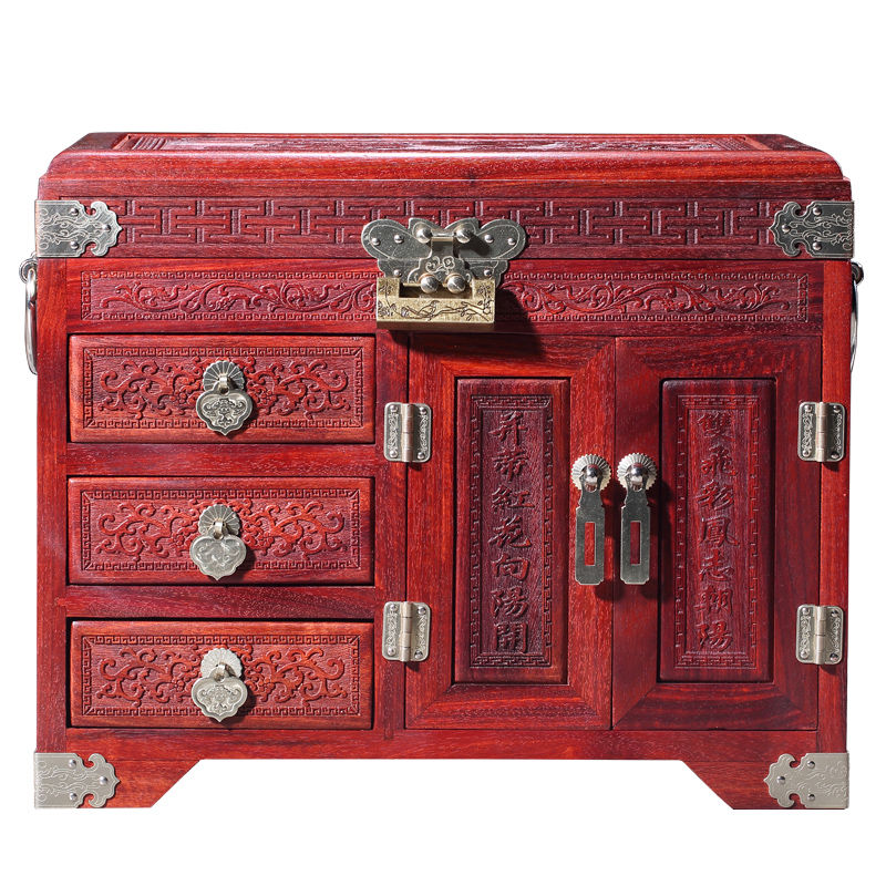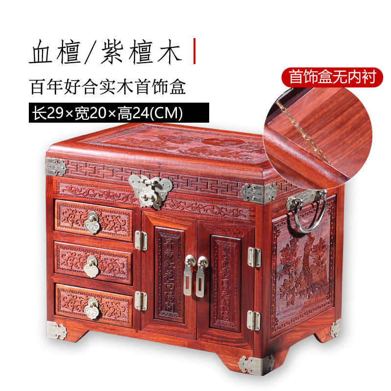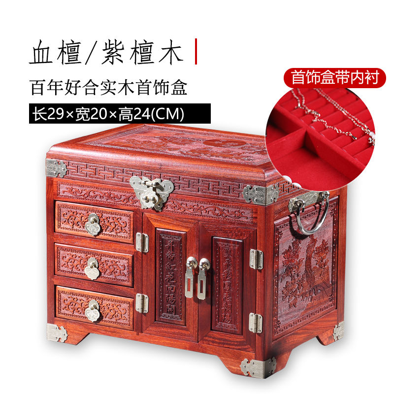 Mahogany Zambian blood sandalwood jewelry box wedding high-end solid wood storage box retro style dressing box with lock advanced