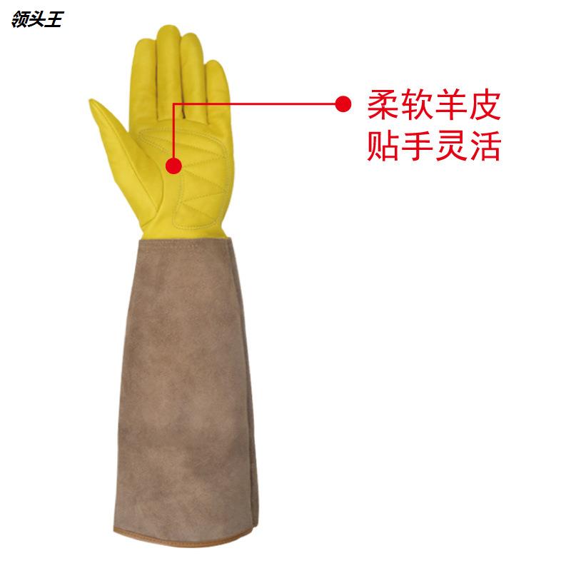 Green Riding Long Version Sheep Leather Gloves Garden Gardening Beekeeping Beehives Anti-Stab Anti-Wear Shock Absorbing Electric Welding Argon Arc Welding