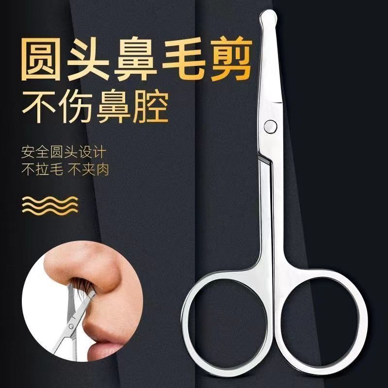 Nose hair trimmer Manual stainless steel scissors round head and nose hair clamp for nasal hair men remove shaving hair
