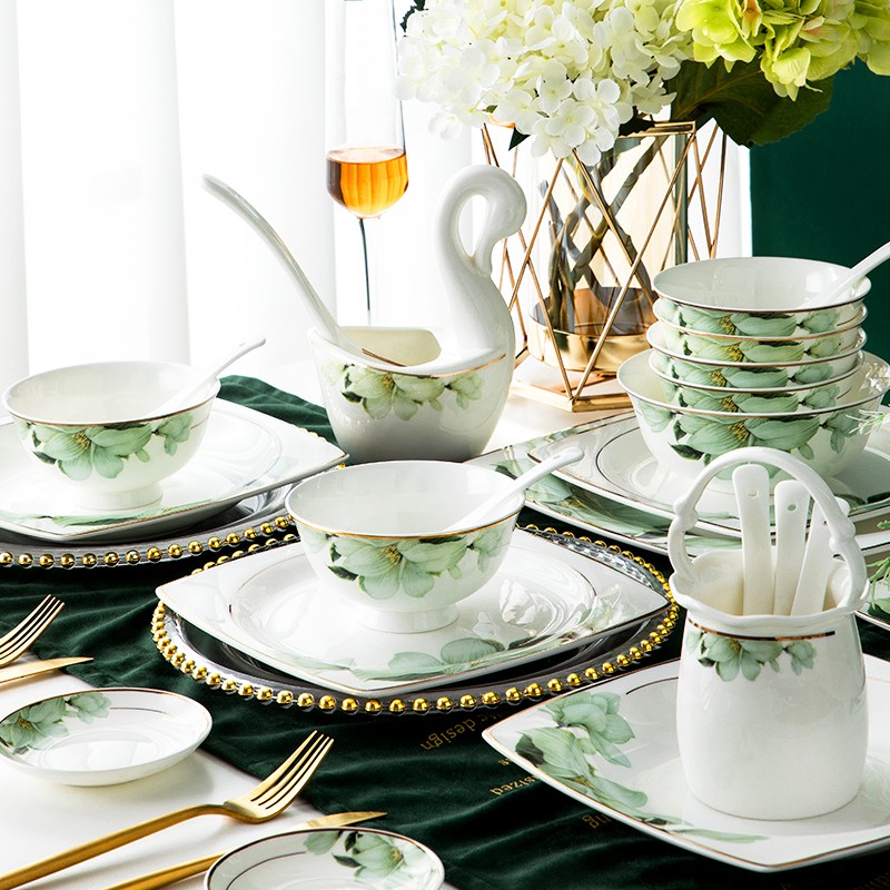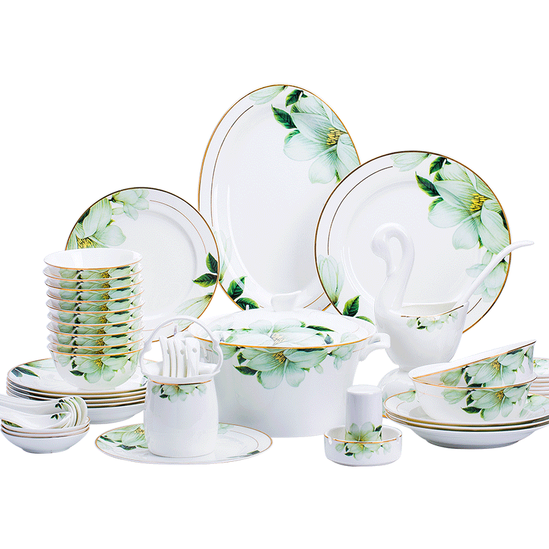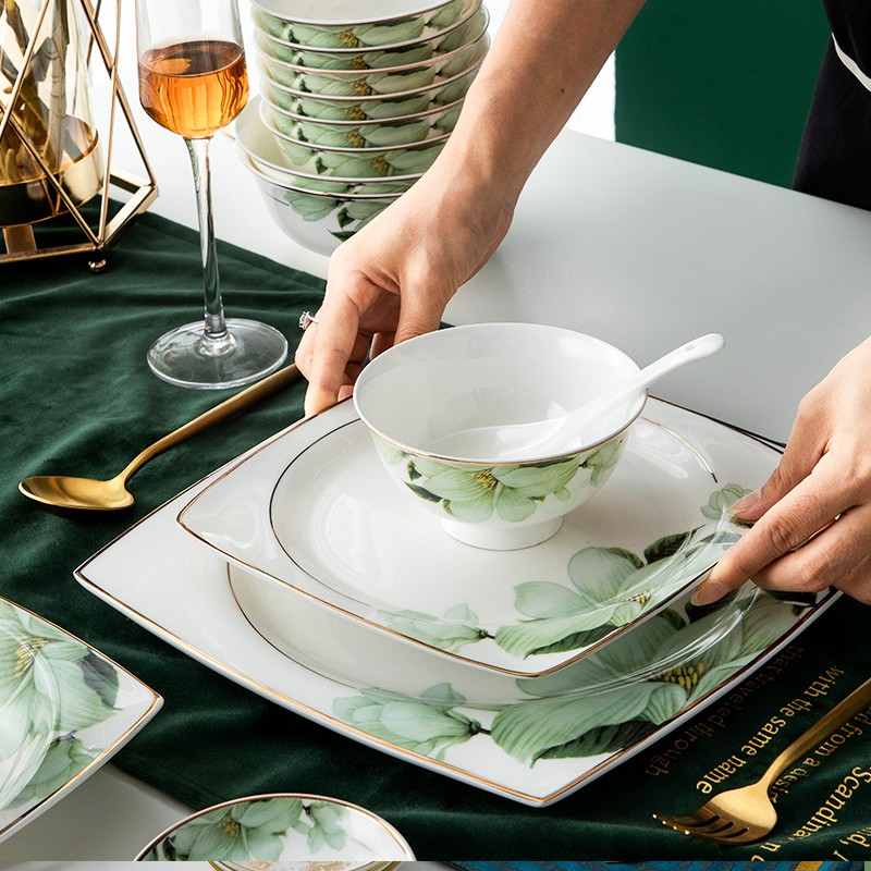 Jingdezhen Ceramic Bone Bowl Dish Household Dishes with Dishes Light Luxury Dishes Dishes Bowl Soup Bowl