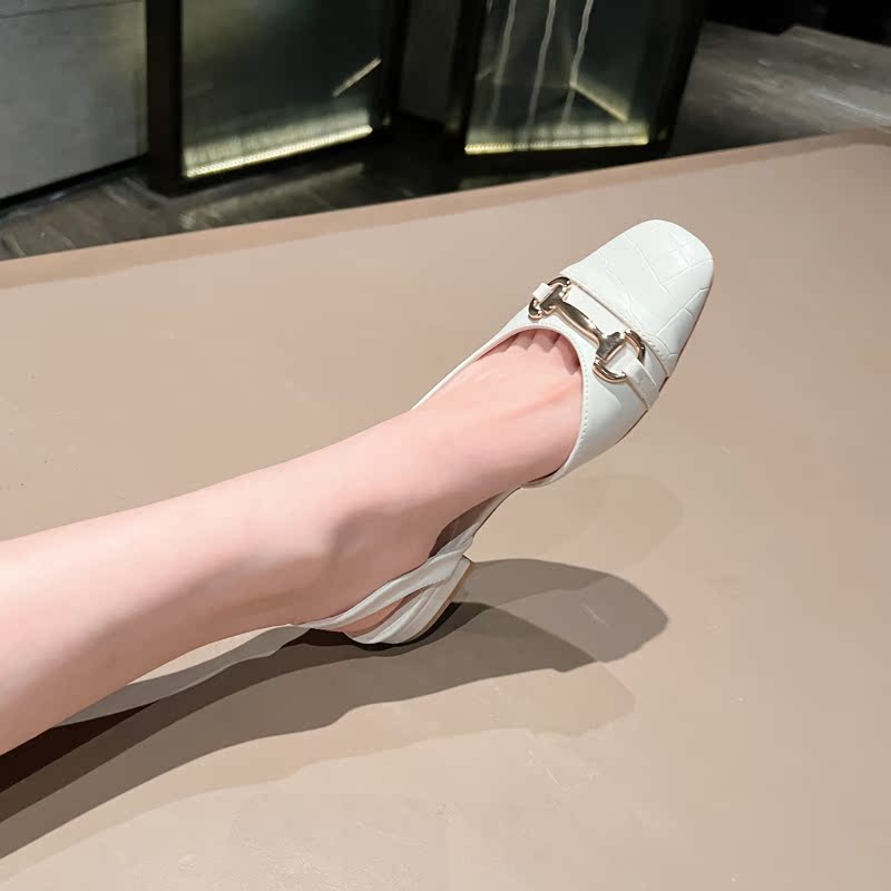 2022 autumn and winter new Korean style Baotou square head flat heel back empty sandals French style low heel temperament single shoes white