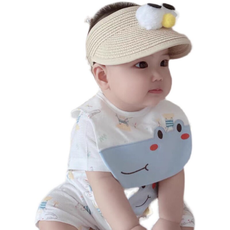 Children's hats for boys and girls, foreign-style sunscreen sun hats, super cute baby empty top straw hats, summer tide thin models