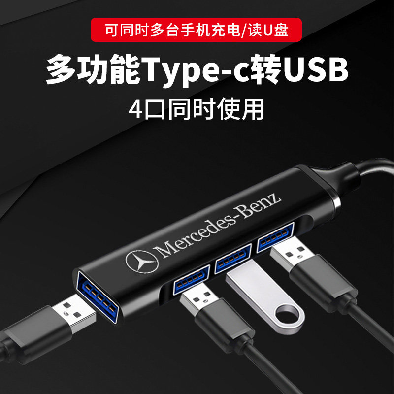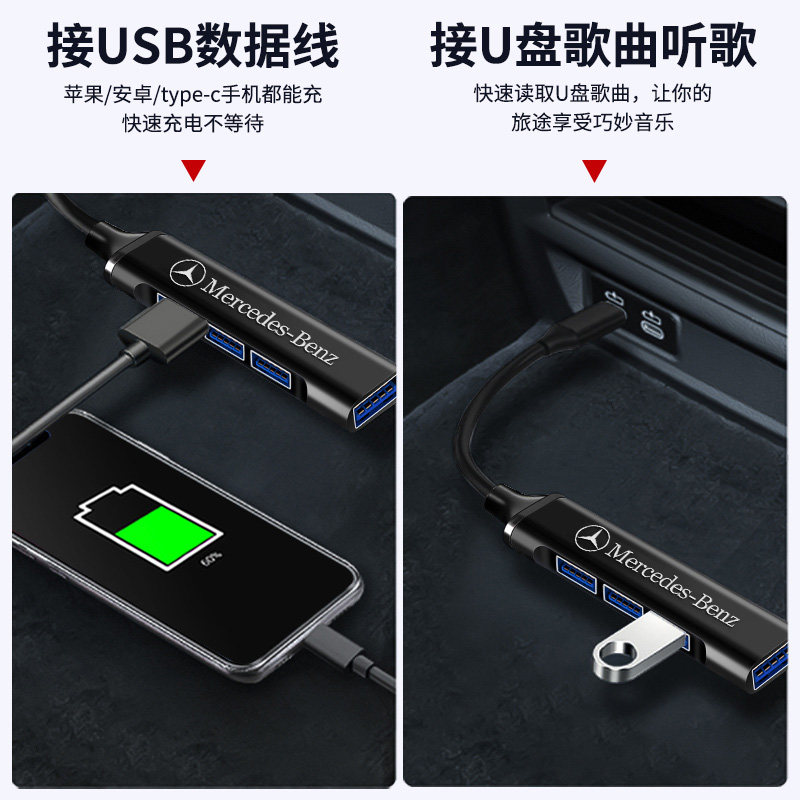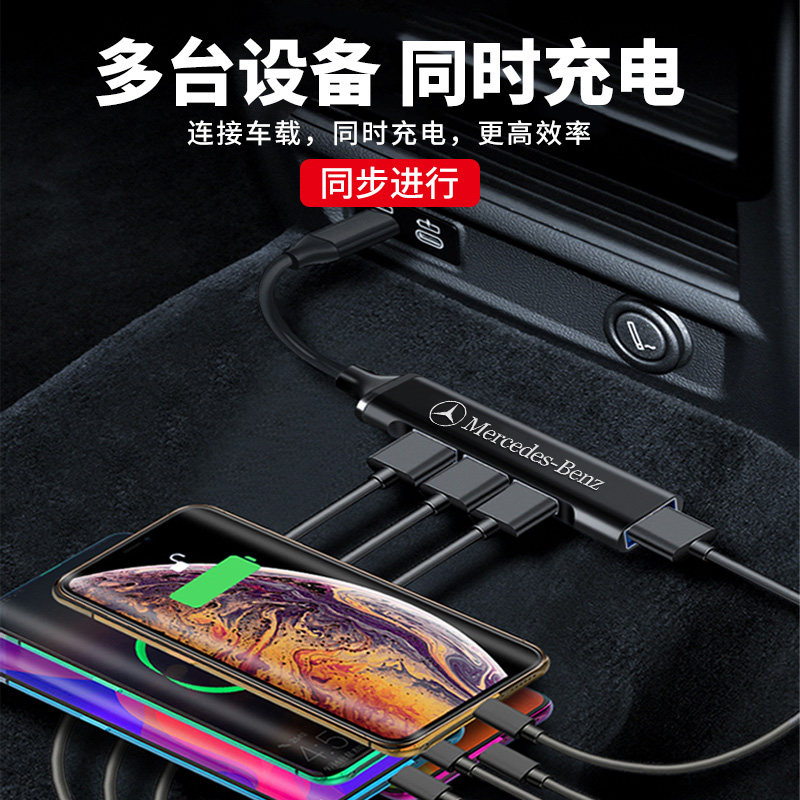 Mercedes car TypeC to USB expander C A E GLC GLA GLB charging adapter GLE data cable