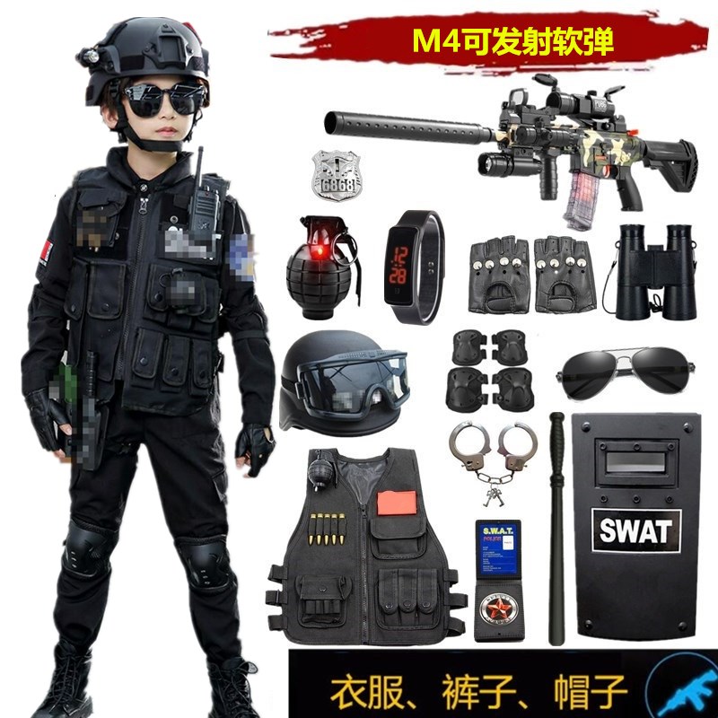 Child Special Soldier Toy Gun Suit Boy Emulation Outdoor Cs Special Police Clothing Plus Suede Small Cop Toy Equip-Taobao