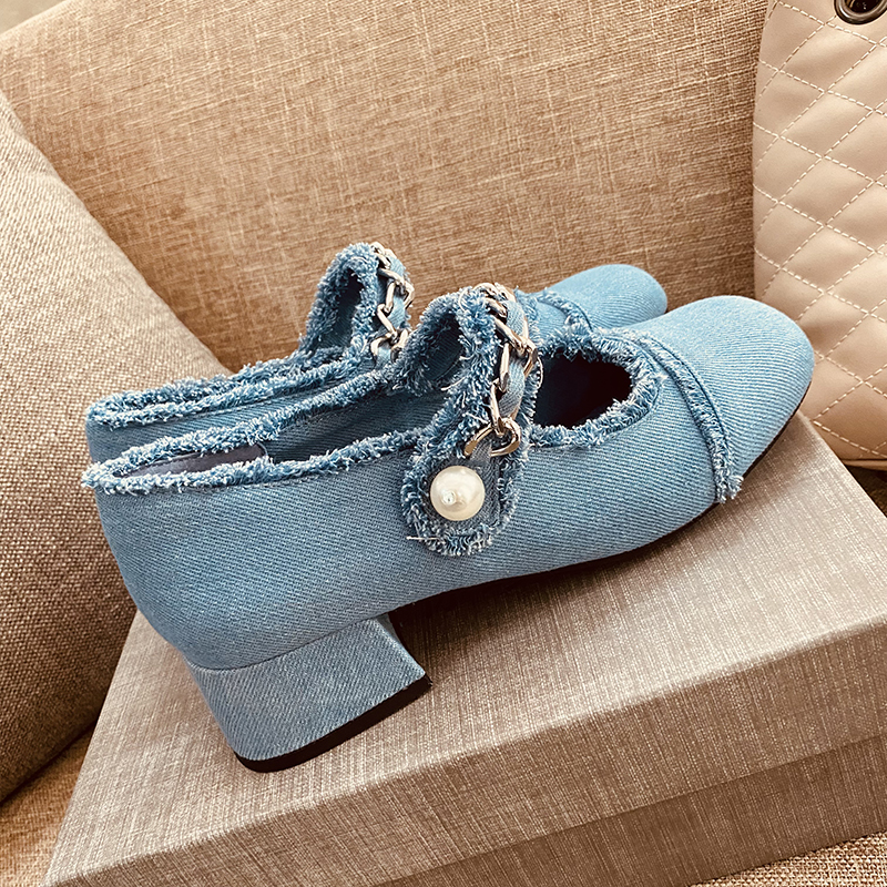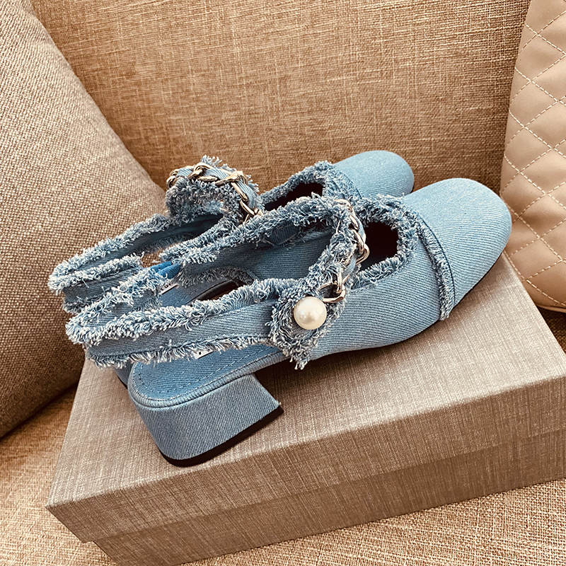 Denim blue denim blue single heel height 4CM denim blue single heel height 6 5CM denim blue sandal heel height 4CM