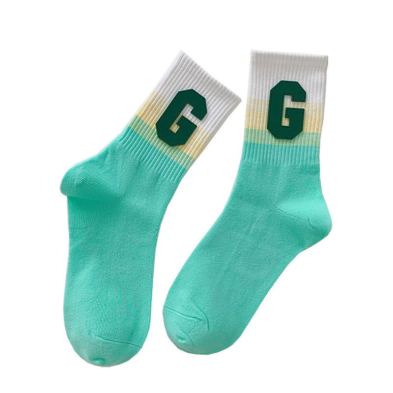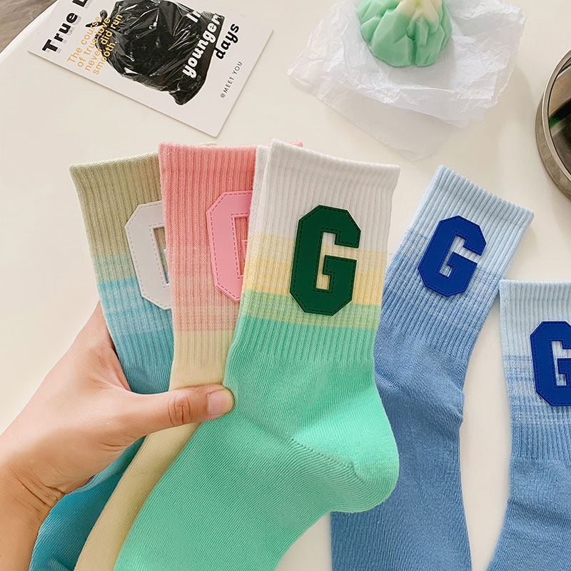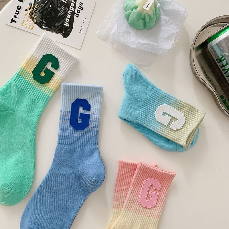 Personality Net Red Letters G Asymptomic Color Socks Female Summer Pure Cotton Thin middle cylinder Sox Korea Chains Tide Sports Long Cylinder