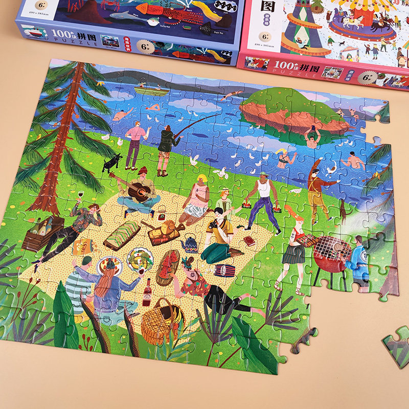 Brown green orange color golden 100 pieces of puzzle-Zoo (6 years old) 100 pieces of puzzle-Fantastic Human Body (6 Years Old) 100 Pieces Puzzle-Kite (6 Years Old) 100 pieces of the puzzle