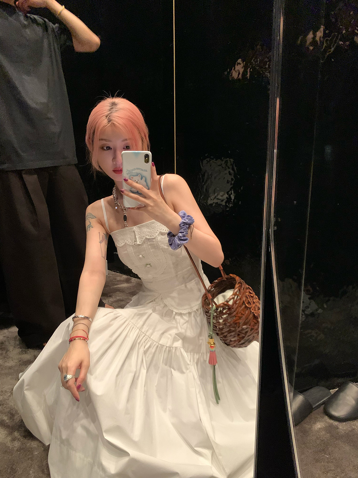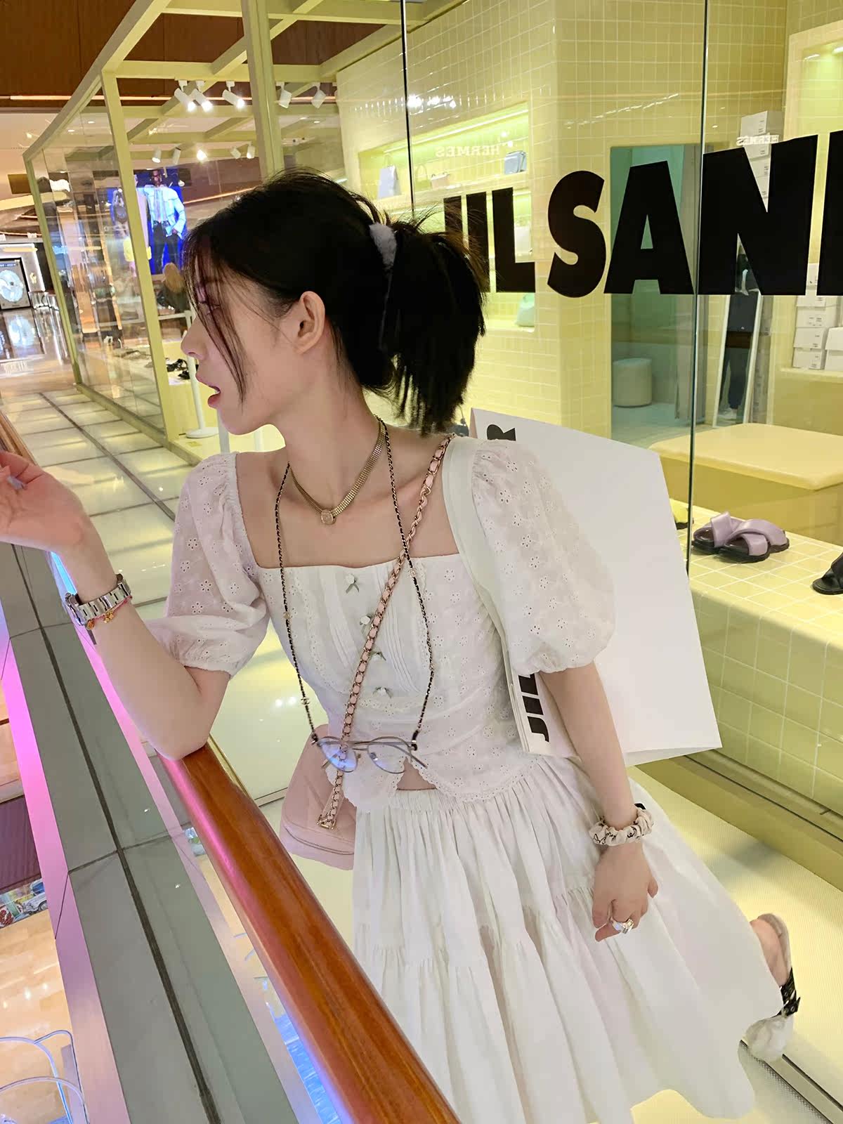 vcruan Ashgo Melbourne City Corridor White Umbrella Skirt Female 2022 Summer New Waist Skirt