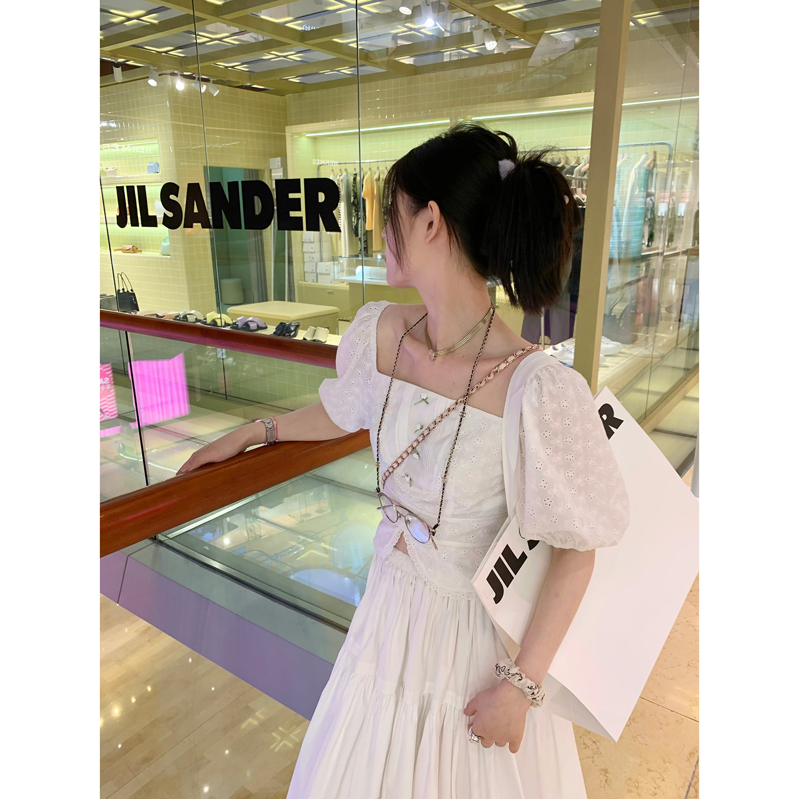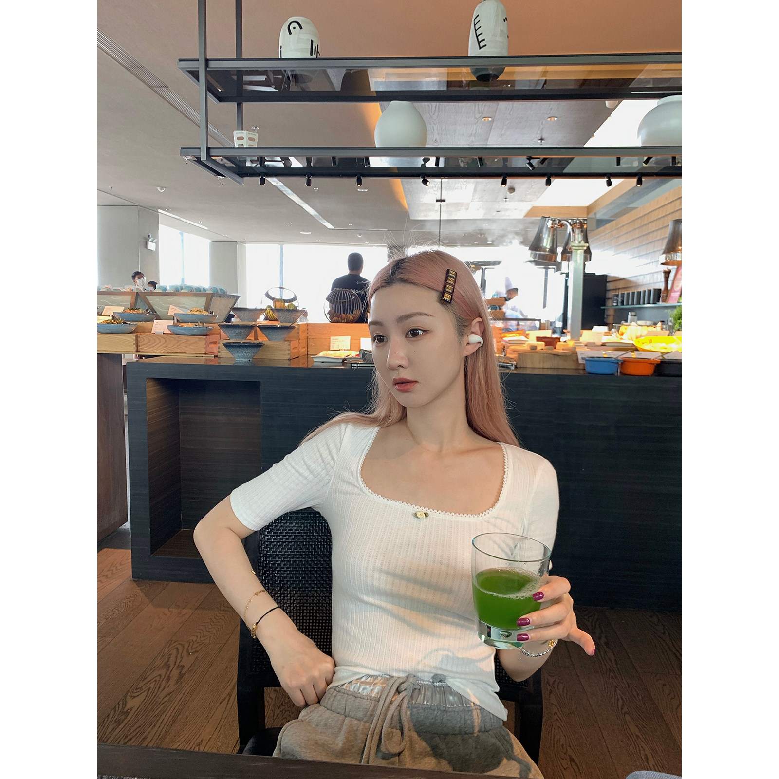 White suspenders White top White T Black T