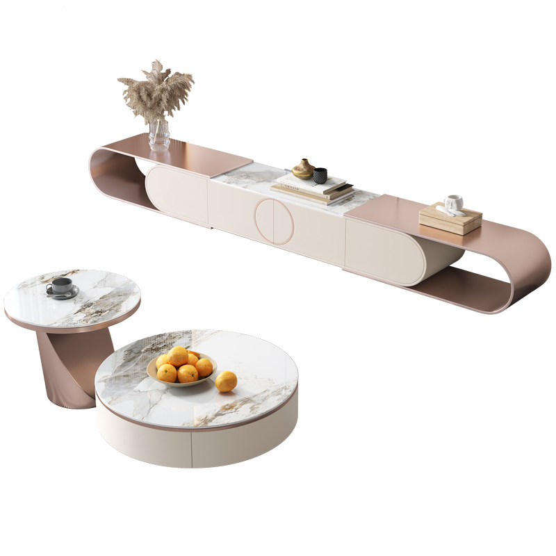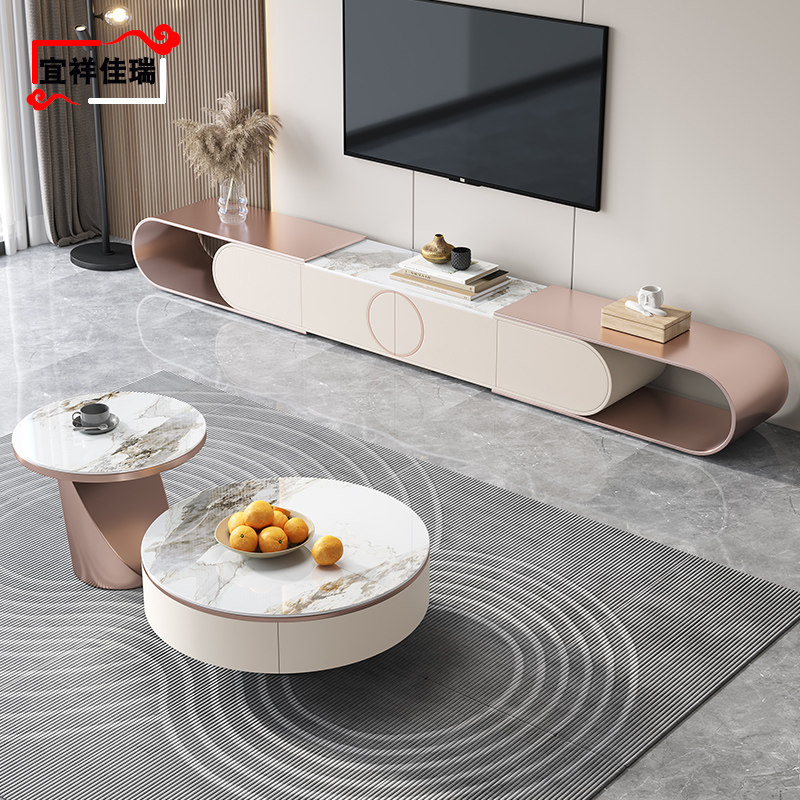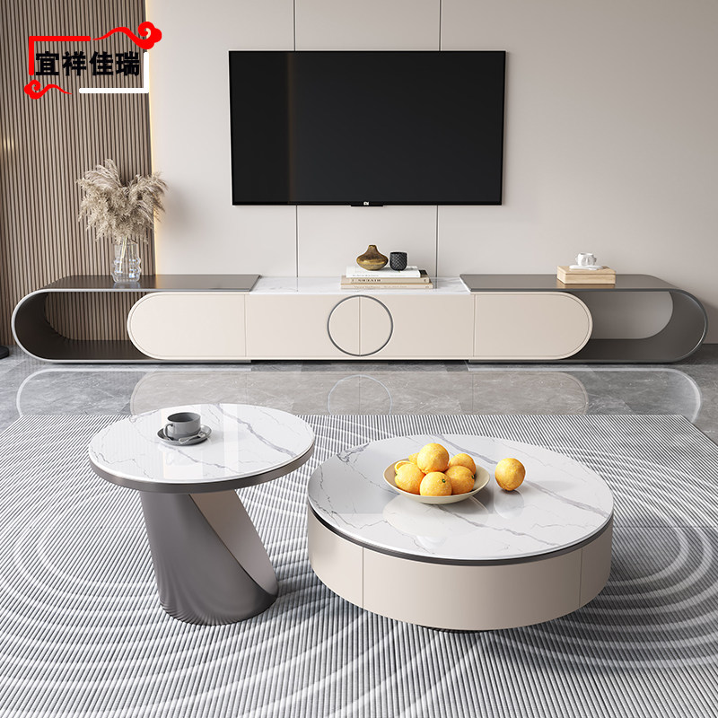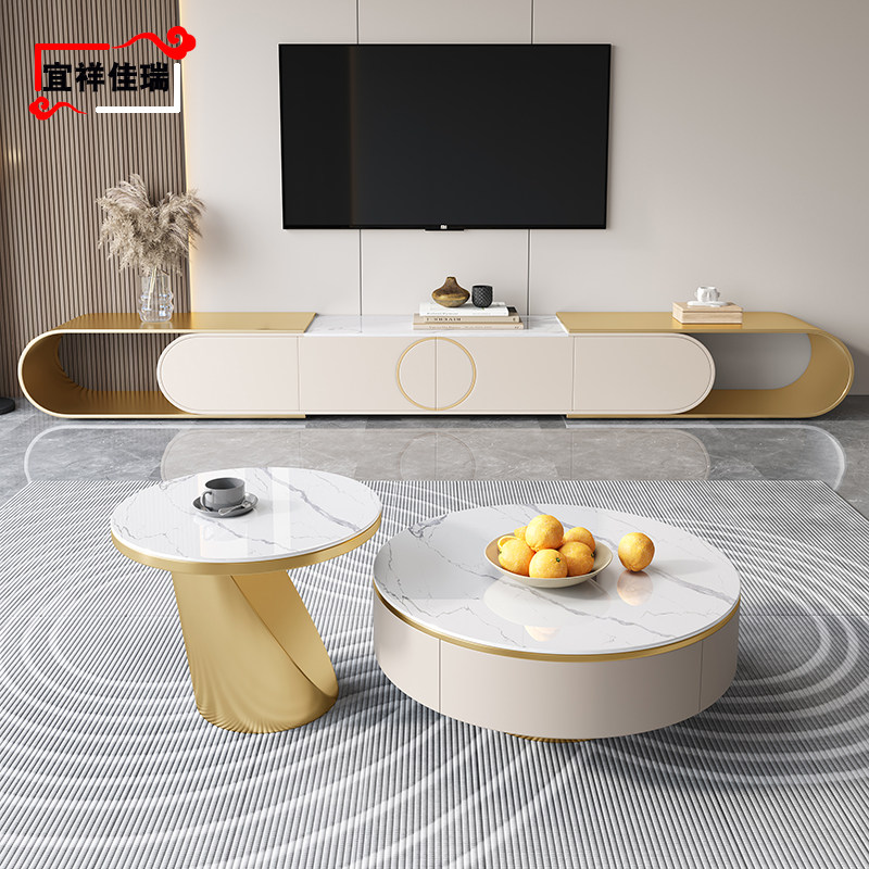 Light extravagant rock plate tea table TV cabinet Composition minimalist modern home small family living room telescopic storage type floor cabinet-Taobao