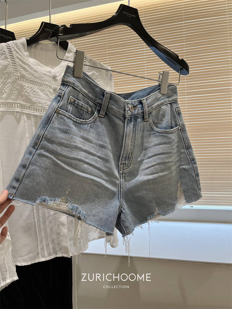 High-end fashion, classic and versatile, old raw edges, thin and long legs, A version, old denim shorts, hot pants
