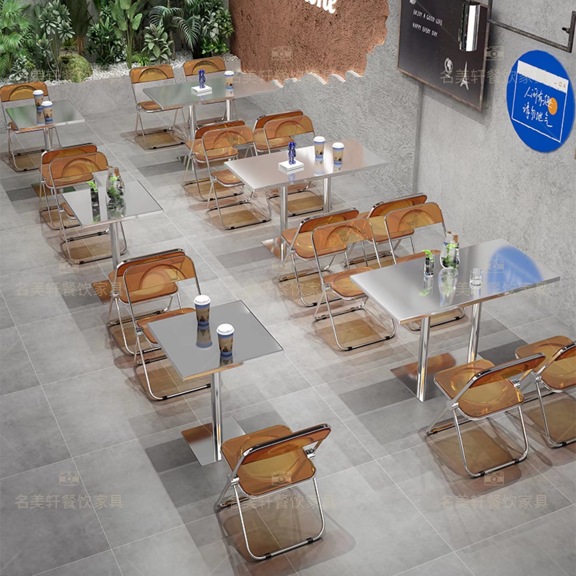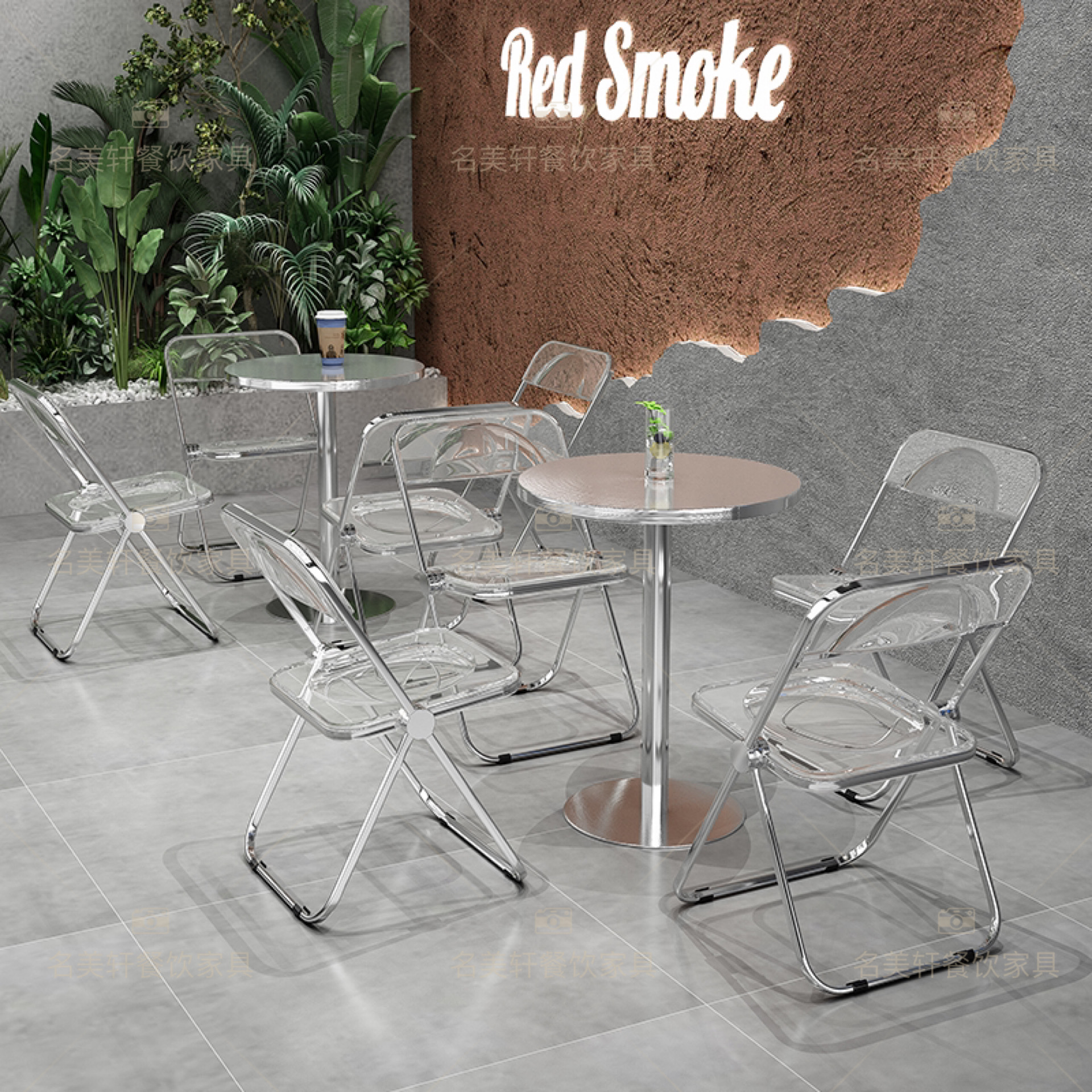 Industrial style stainless steel small round table folding acrylic chair cafe tea shop chair table and chair combination metal bar table