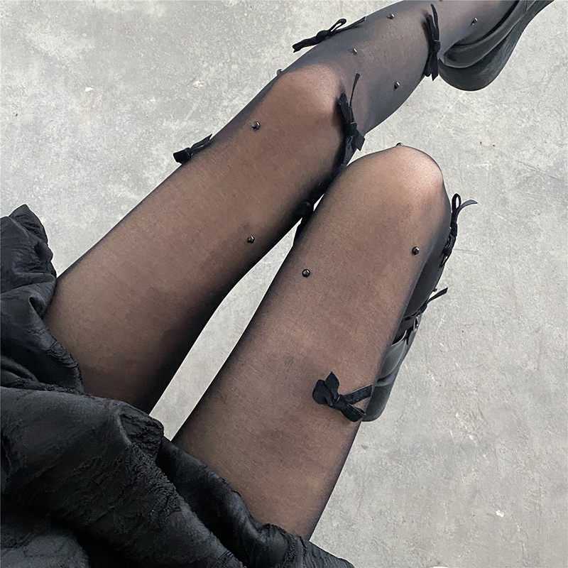 Ultra thin summer pure-lust stockings Han butterfly knot white Lolita pantyhose handmade pearl red socks