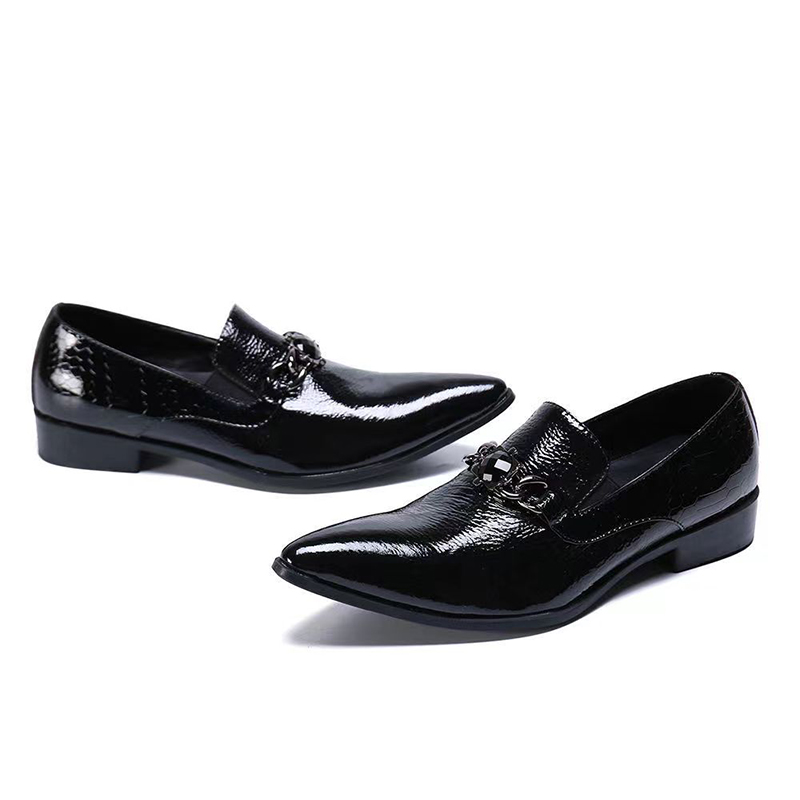 JACKS personality trend men's pointed leather shoes business casual wedding bright leather hair stylist Korean leather shoes