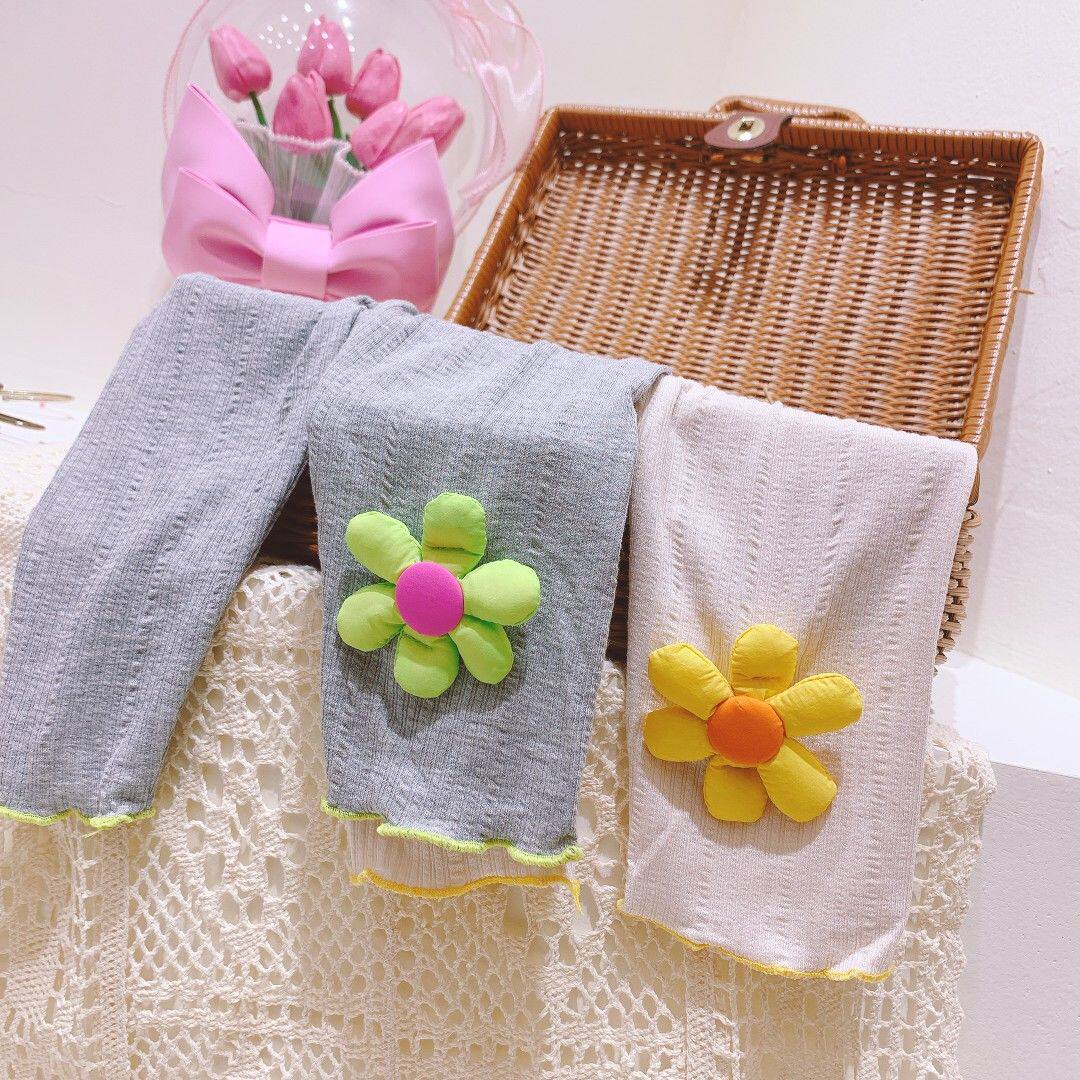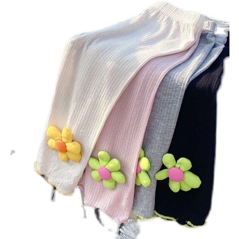 2022 summer in wind small flower cool 9 points bottle girl baby pure cotton wear gas elastic nine pants