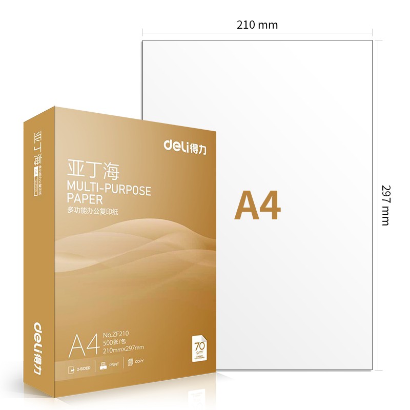 Right-hand deli Aden Sea bifacial straw draft paper office white paper student A4 photocopy paper photocopy paper 70g80g