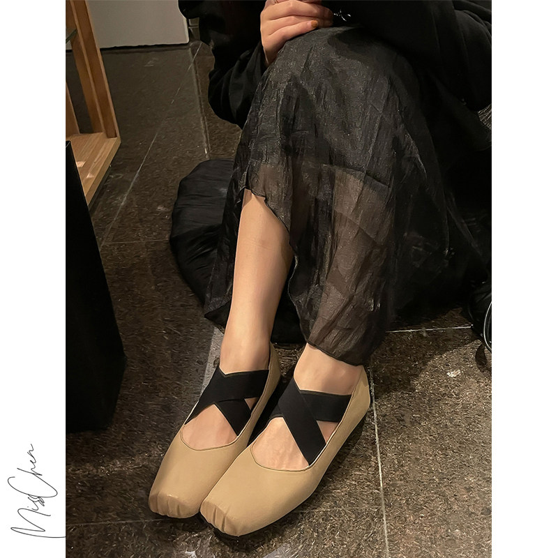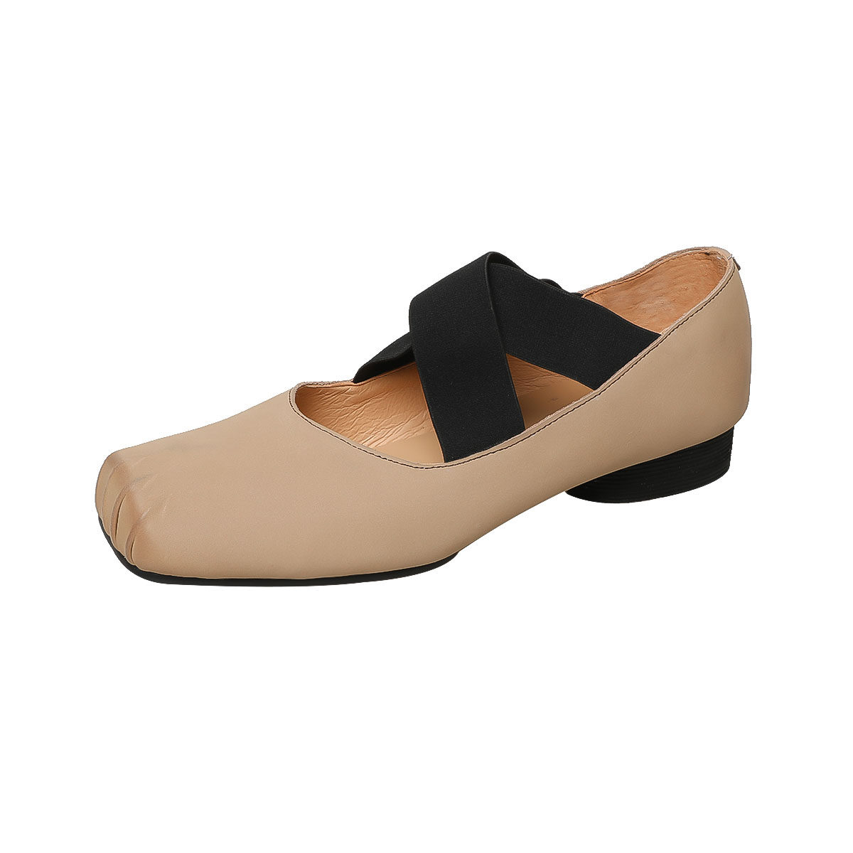 (Miss Chen) is a dancer~ Whole leather shallow mouth retro pig nose Mary Jane flat ballet shoes for women