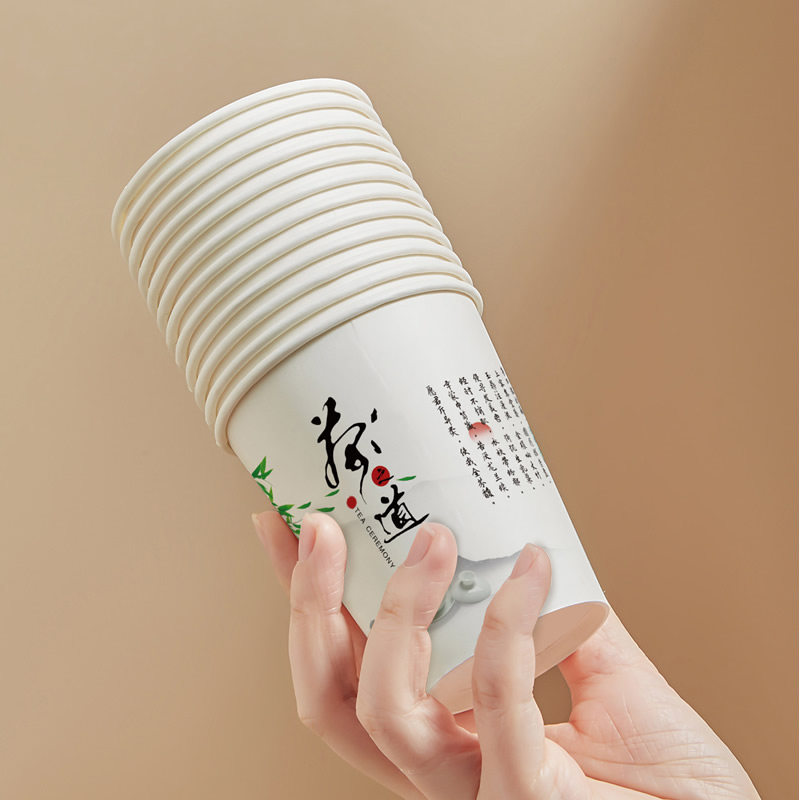 Tea Road disposable paper cup Home thickened add hard paper cup whole box 100 Business office coffee cup soy milk cup-Taobao