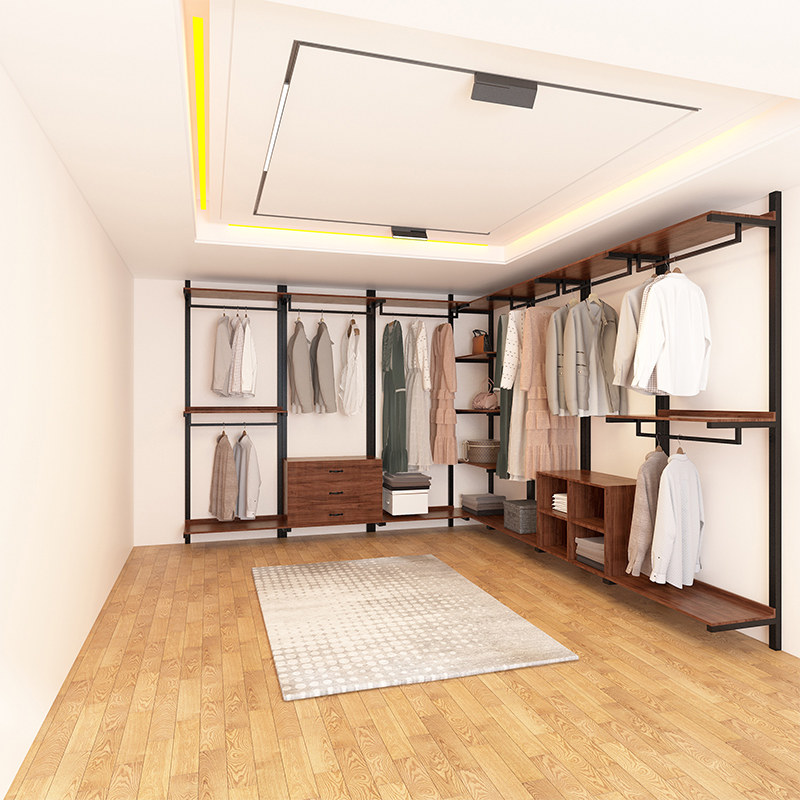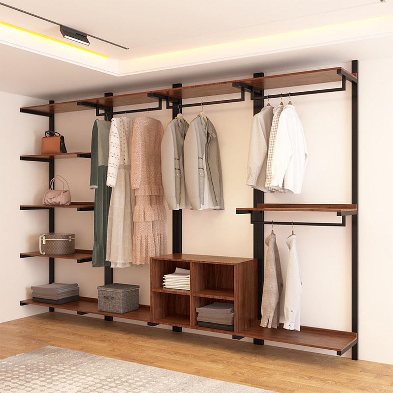 Open coat rack bedroom art design hanger combination walk-in shelf metal wall hanging cloakroom
