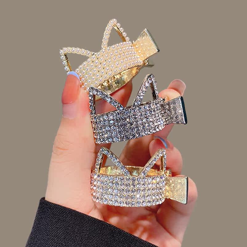 Net red 4-piece set 1#Pearl cat ear2#Rhinestone cat ear gold10#Rhinestone cat ear silver5#Silver rhinestone rhombus 9#Gold irregular flash black Flash silver flash gold Flash silver flash black