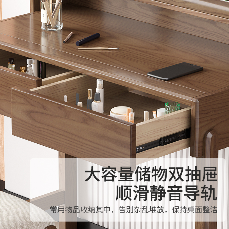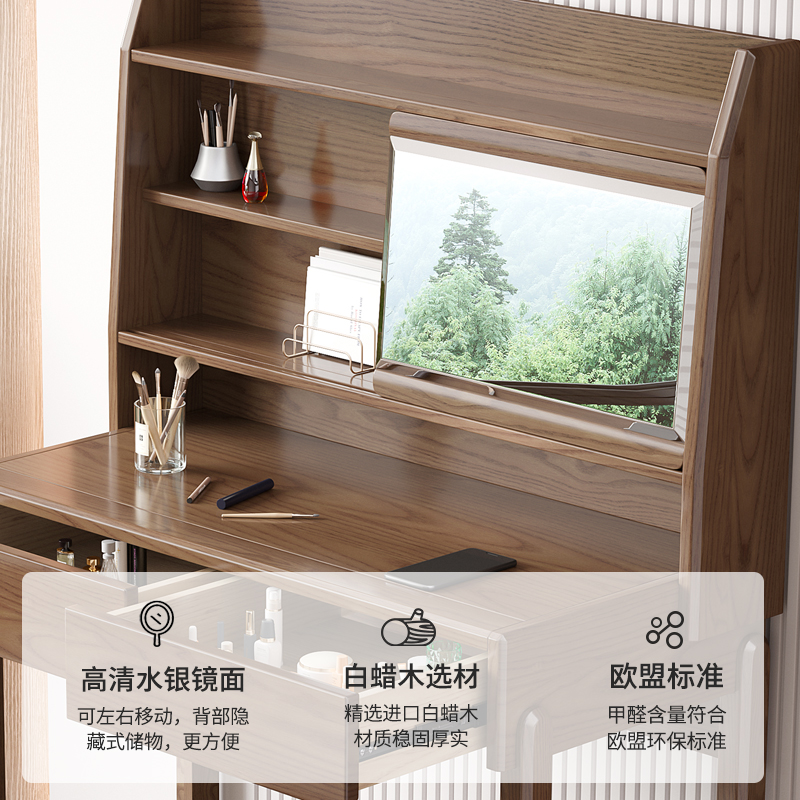 Italian-style North American ash wood dressing table modern minimalist small bedroom storage cabinet all solid wood light luxury dressing table