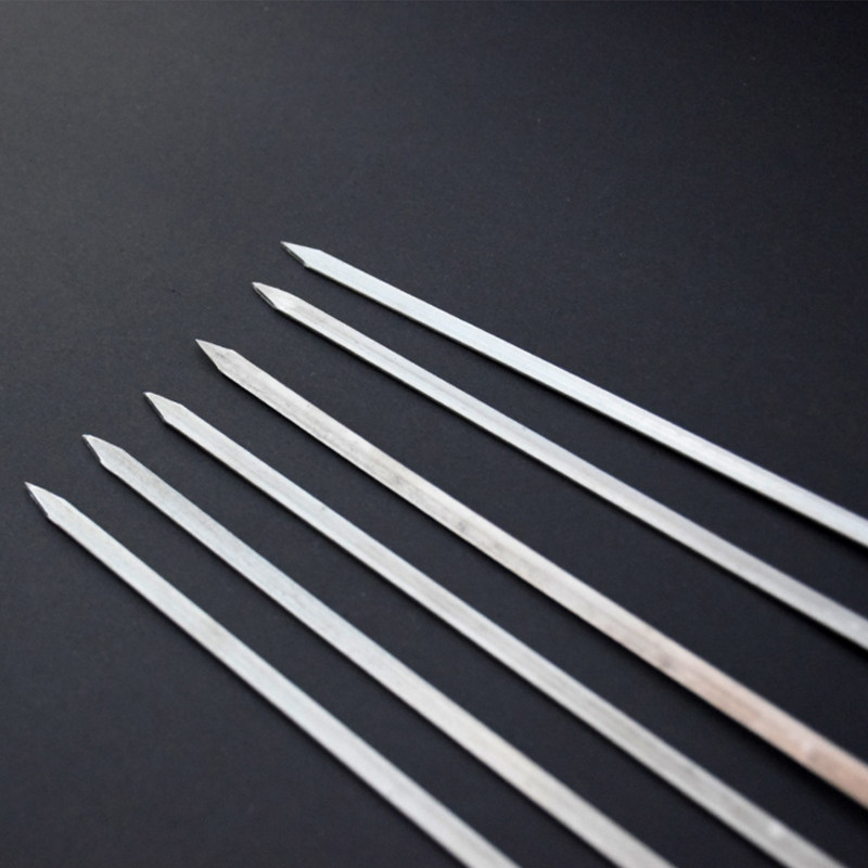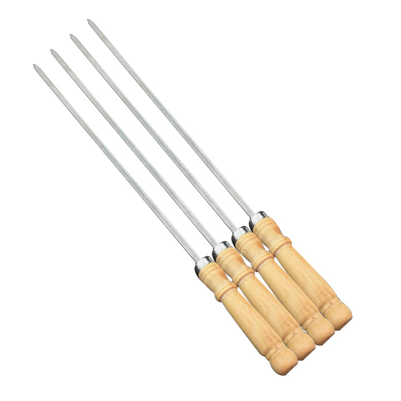 Barbecue sign household commercial outdoor wooden handle thickened and widened stainless steel large flat needle steel needle barbecue tool roast needle