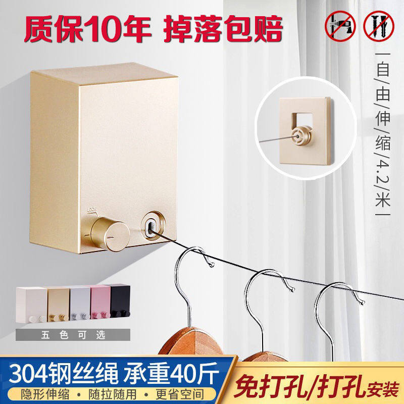 Invisible shrinking clothesline indoor free punching telescopic clothes rack bathroom bathroom drying clothes artifact drying clothes