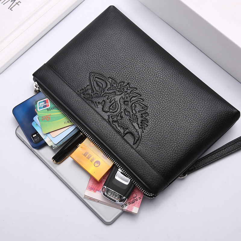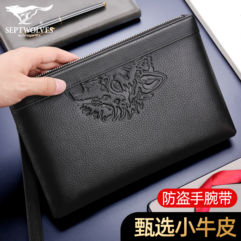 Seven wolf men handbag leather handbag male bag large capacity hand grab bag casual bull leather envelope bag