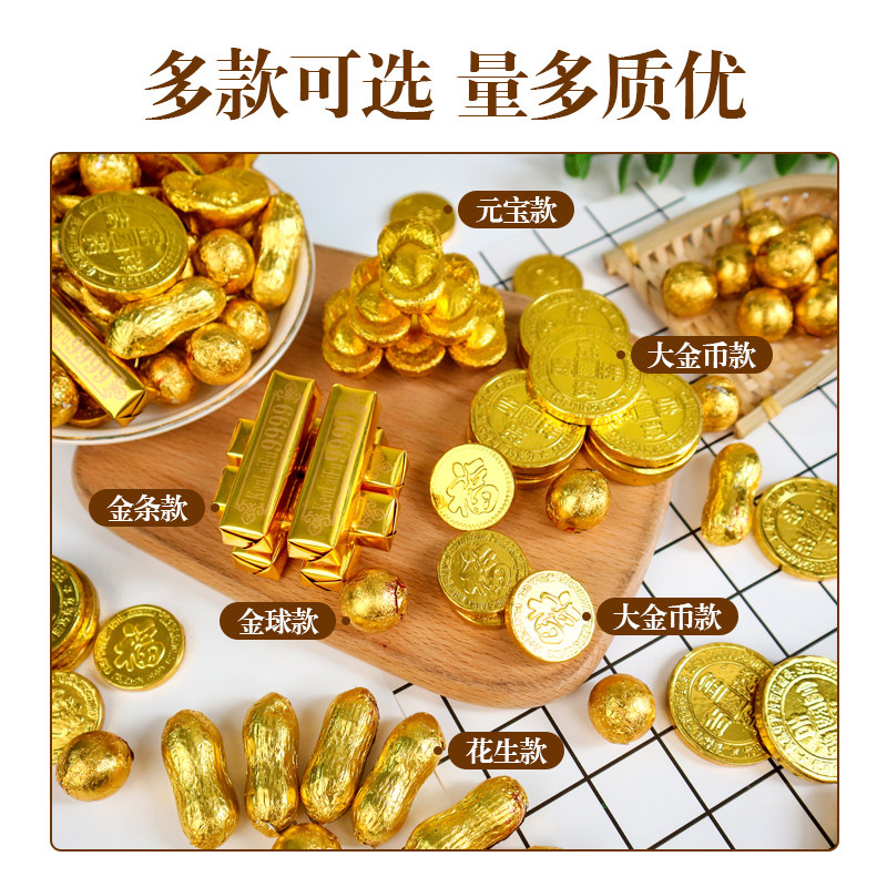 Mixed Chocolate 500g Golden Ball Chocolate 500g Peanut Chocolate 500g Gold Bar Chocolate 500g Yuan Bao Chocolate 500g28mm gold plated 500g38mm gold