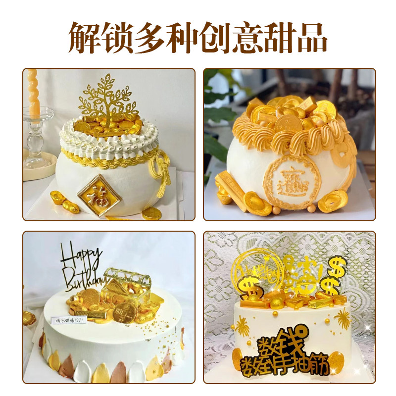 Golden Chocolate Birthday Cake Decoration Gold Bars Meta Treasure Chaine Wedding Celebration of Joy Candy Swing inserts Baking small gold coins