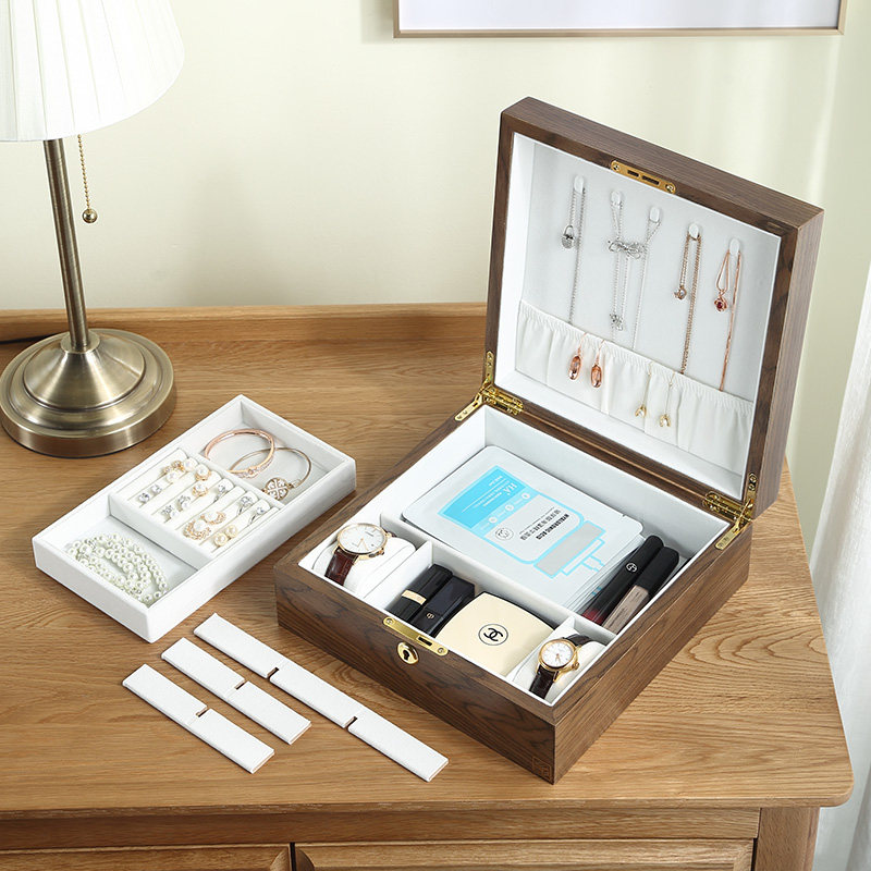 Light Extravagant Lock Style Ornament Jewelry Box Containing Ancient Wind Solid Wood Walnuts Large Capacity Earrings Ear Nail Jewelry