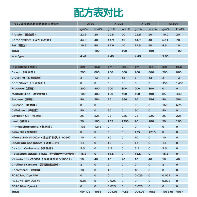 Synergistic bio-customized purified feed high fat high cholesterol high fructose fatty liver hyperlipidemic disease XT310-Taobao