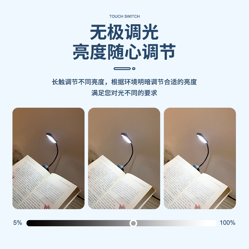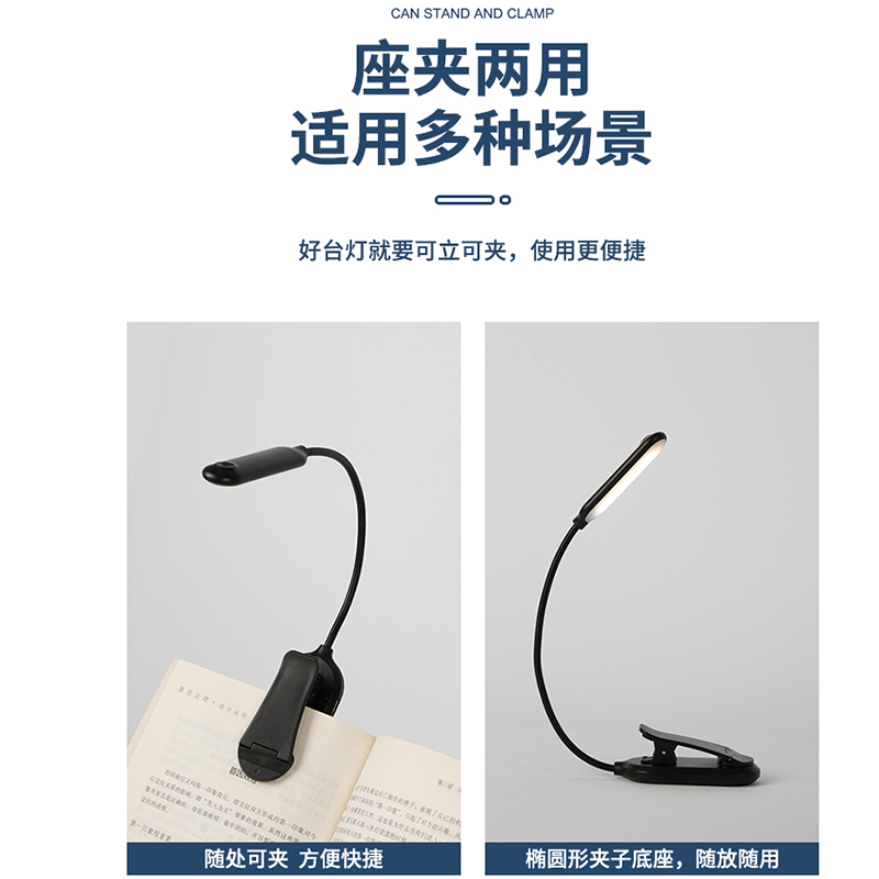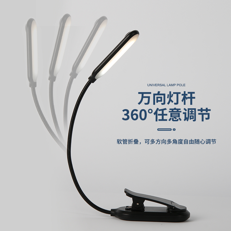 Clip book lamp rechargeable table lamp bedside lamp small night lamp student learning touch dormitory reading artifact black sheet music lamp