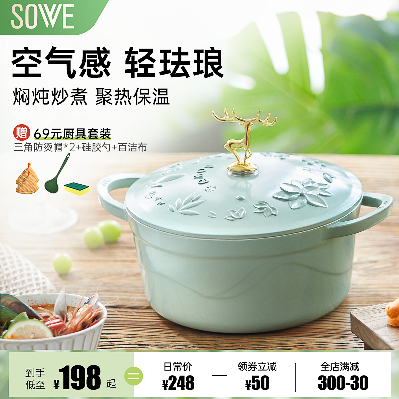 sowe ceramic embossed enamel pot household stew pot casserole stew pot stew pot cast iron pot multi-functional soup pot cooking pot