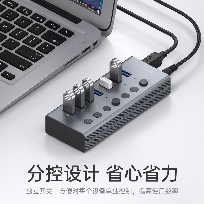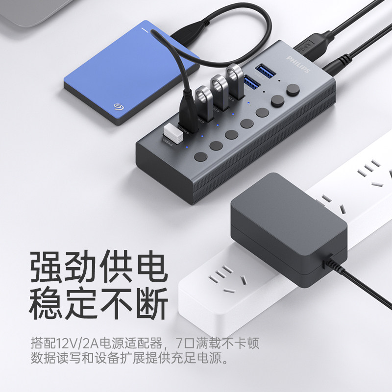 170 Philips usb3 0 splitter 7 10 port with power hub U pan keyrat mobile phone charging computer notebook one drag multifunction external interface conversion joint jack expander hUB-T
