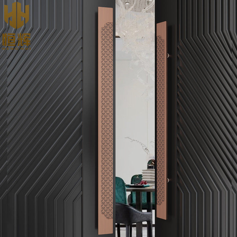 Chinese antique copper double switch door handle hotel club sliding glass door handle custom solid wood door handrail