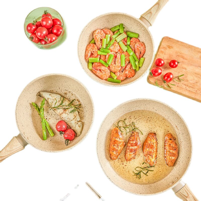 No cover -20 wood handle big mouth deep frying pan with no cover -20cm beige frying pan with no cover -20cm wood handle beige deep fried sending wood shoved without cover -24cm wood handle beige deep frying and sending wood