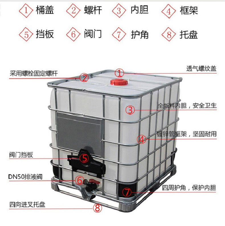 Plastic ibc ton barrel new thickened chemical storage barrel 1000 liter container barrel square 1 ton water tank tank diesel barrel